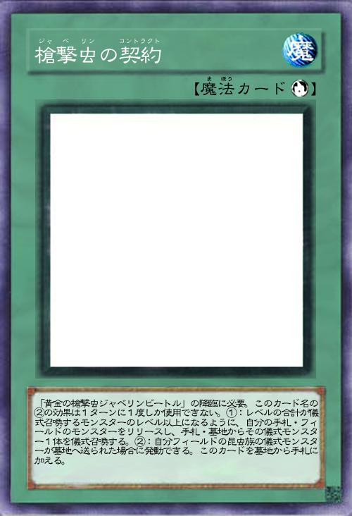 | 「黄金の槍撃虫ジャベリンビートル」の降臨に必要。このカード名の②の効果は1ターンに1度しか使用できない。①:レベルの合計が儀式召喚するモンスターのレベル以上になるように、自分の手札・フィールドのモンスターをリリースし、手札・墓地からその儀式モンスター1体を儀式召喚する。②:自分フィールドの昆虫族の儀式モンスターが墓地へ送られた場合に発動できる。このカードを墓地から手札に加える。 | |||