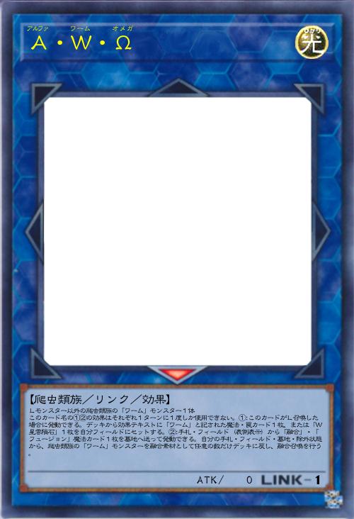 | Lモンスター以外の爬虫類族の「ワーム」モンスター1体 このカード名の①②の効果はそれぞれ1ターンに1度しか使用できない。①:このカードがL召喚した場合に発動できる。デッキから効果テキストに「ワーム」と記された魔法・罠カード1枚、または「W星雲隕石」1枚を自分フィールドにセットする。②:手札・フィールド(表側表示)から「融合」・「フュージョン」魔法カード1枚を墓地へ送って発動できる。自分の手札・フィールド・墓地・除外状態から、爬虫類族の「ワーム」モンスターを融合素材として任意の数だけデッキに戻し、融合召喚を行う。 | |||
