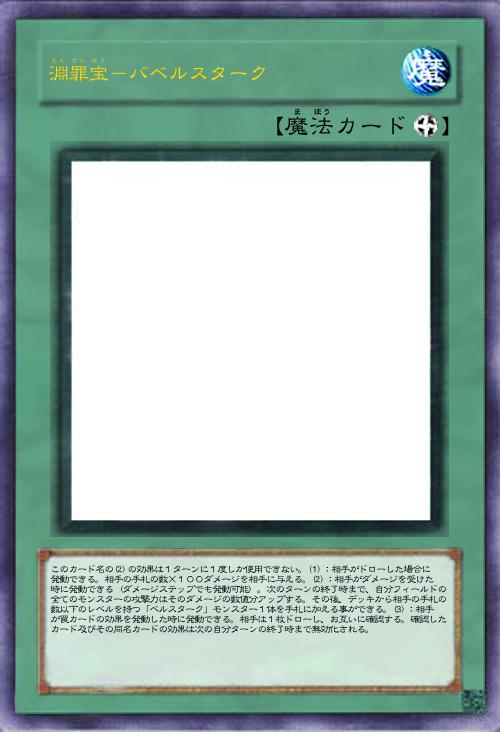 | このカード名の(2)の効果は1ターンに1度しか使用できない。(1):相手がドローした場合に発動できる。相手の手札の数×100ダメージを相手に与える。(2):相手がダメージを受けた時に発動できる(ダメージステップでも発動可能)。次のターンの終了時まで、自分フィールドの全てのモンスターの攻撃力はそのダメージの数値分アップする。その後、デッキから相手の手札の数以下のレベルを持つ「ベルスターク」モンスター1体を手札に加える事ができる。(3):相手が罠カードの効果を発動した時に発動できる。相手は1枚ドローし、お互いに確認する。確認したカード及びその同名カードの効果は次の自分ターンの終了時まで無効化される。 | |||