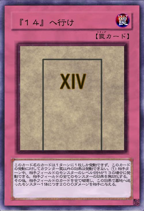 | このカード名のカードは1ターンに1枚しか発動できず、このカードの発動に対してカウンター罠以外の効果は発動できない。①:相手ターン中、相手フィールドのモンスターのレベル合計が13の場合に発動できる。相手フィールドの全てのモンスターの効果を無効化する。その後、相手フィールドのカードを全て破壊し、この効果で墓地へ送ったモンスター1体につき2000ダメージを相手に与える。 | |||