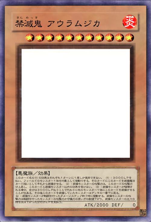 | このカード名の(1)の効果はそれぞれ1ターンに1度しか使用できない。 (1):3000LPを払い、フィールドのモンスター1体を対象として発動できる。そのカードにこのカードを装備魔法カード扱いとして手札から装備させる。 (2):装備モンスターの攻撃力は、このカードの攻撃力分上昇し、このカードと装備モンスター以外の効果を受けない。 (3):装備モンスターが破壊される場合、自分は3000LP払うことで代わりに他のモンスター1体にこのカードを装備させることが出来る。その後このカードを装備していたモンスターはデッキの一番下に戻る。 (4):装備モンスターが戦闘を行ったダメージステップ終了時に発動する。装備モンスターの攻撃力は戦闘を行ったモンスターの攻撃力か守備力の高い方の数値下がり、装備モンスターの元々の持ち主は下がった分だけLPを支払う。 | |||