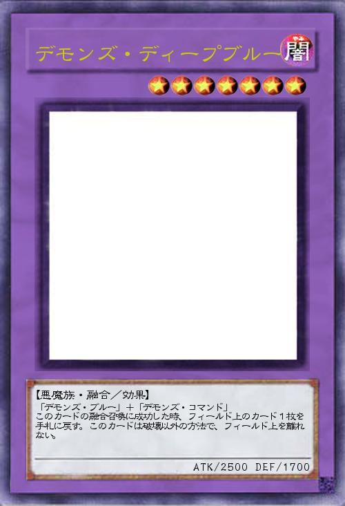 「デモンズ・ブルー」+「デモンズ・コマンド」 このカードの融合召喚に成功した時、フィールド上のカード1枚を手札に戻す。このカードは破壊以外の方法で、フィールド上を離れない。 |