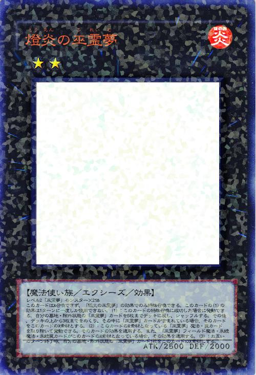 | レベル2「巫霊夢」モンスター×2体 このカードはX召喚できず、「狐火の巫霊夢」の効果でのみ特殊召喚できる。このカードの(1)の効果は1ターンに一度しか使用できない。(1):このカードの特殊召喚に成功した場合に発動できる。自分の墓地・除外状態の「巫霊夢」カードを5枚までデッキに戻し、シャッフルする。その後、デッキの上から3枚までをめくり、その中に「巫霊夢」カードが含まれている場合、そのカードをこのカードのX素材とする。(2):このカードのX素材となっている「巫霊夢」魔法・罠カードを取り除いて発動できる。そのカードの効果を適用する。また、「巫霊夢」フィールド魔法・永続魔法・永続罠カードがこのカードのX素材となっている場合、その効果を適用する。(3):お互いのターン終了時、自分の墓地・除外状態の「巫霊夢」カード1枚をこのカードのX素材にする。 | |||