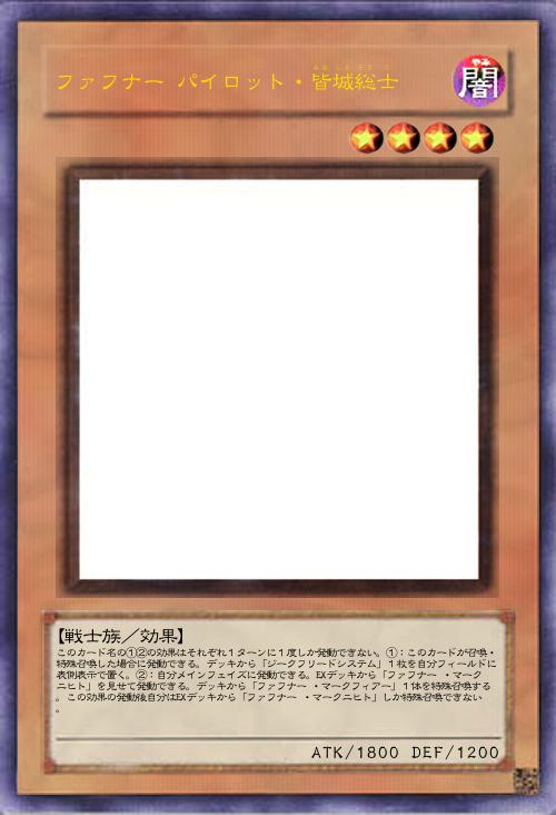 | このカード名の①②の効果はそれぞれ1ターンに1度しか発動できない。①:このカードが召喚・特殊召喚した場合に発動できる。デッキから「ジークフリードシステム」1枚を自分フィールドに表側表示で置く。②:自分メインフェイズに発動できる。EXデッキから「ファフナー ・マークニヒト」を見せて発動できる。デッキから「ファフナー ・マークフィアー」1体を特殊召喚する。この効果の発動後自分はEXデッキから「ファフナー ・マークニヒト」しか特殊召喚できない。 | |||