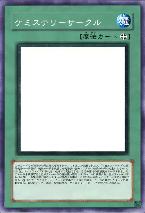 | このカード名の②③の効果はそれぞれ1ターンに1度しか使用できない。①:自分フィールドの装備魔法カード及び、装備カードを装備した魔法使い族モンスターは相手の効果の対象にならない。②:自分メインフェイズに手札を1枚捨てて発動できる。自分の墓地の装備魔法カード1枚を、そのカードを装備可能な自分フィールドの魔法使い族モンスター1体に装備する。自分フィールドにレベル5以上の魔法使い族モンスターが存在する場合、この効果は相手メインフェイズでも発動できる。③:自分が「ケミステリー」カードの効果でサイコロを振り、5・6の目が出たターンに発動できる。自分のデッキ・墓地・除外状態の「ケミステリー」カード1枚を手札に加える。 | |||