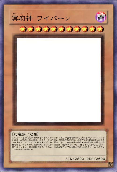 | このカード名の②③の効果はそれぞれ1ターンに1度しか使用できない。①:自分フィールドにモンスターが存在しない場合、このカードは手札から特殊召喚できる。この方法で特殊召喚したこのカードはエンドフェイズに持ち主のデッキに戻る。②:このカードが召喚・特殊召喚した場合に発動できる。デッキから「冥府神」モンスターまたは「絶対神 ン・マ」1体を手札に加える。③:相手メインフェイズに発動できる。このカードの攻撃力以下の攻撃力を持つ相手フィールドのモンスターを全て破壊する。 | |||