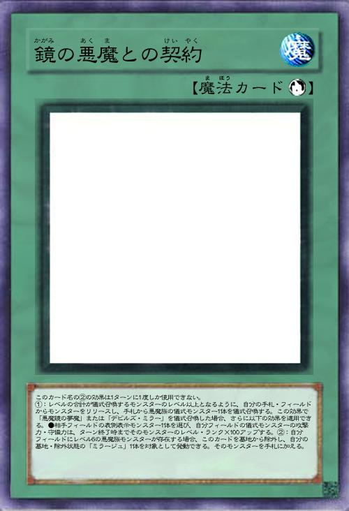 | このカード名の②の効果は1ターンに1度しか使用できない。 ①:レベルの合計が儀式召喚するモンスターのレベル以上となるように、自分の手札・フィールドからモンスターをリリースし、手札から悪魔族の儀式モンスター1体を儀式召喚する。この効果で「悪魔鏡の夢魔」または「デビルズ・ミラー」を儀式召喚した場合、さらに以下の効果を適用できる。●相手フィールドの表側表示モンスター1体を選び、自分フィールドの儀式モンスターの攻撃力・守備力は、ターン終了時までそのモンスターのレベル・ランク×100アップする。②:自分フィールドにレベル6の悪魔族モンスターが存在する場合、このカードを墓地から除外し、自分の墓地・除外状態の「ミラージュ」1体を対象として発動できる。そのモンスターを手札に加える。 | |||