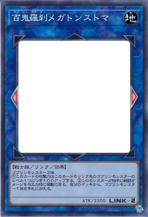 | ゴブリンモンスター2体 ①このカードの攻撃力はこのカードのリンク先のゴブリンモンスターのレベル1つにつき100アップする。②このモンスターが相手に戦闘ダメージを与えた時に発動できる。自分のデッキから、ゴブリンモンスター1体を手札に加える。 | |||