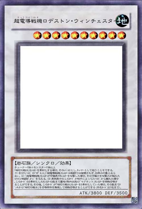 | チューナー1体+モンスター1体以上 「磁石の戦士」モンスターを素材とする場合、そのレベル2とし、チューナーとして扱うこともできる。 (1)自分フィールドの「マグネット」「超電導戦機」モンスターは戦闘では破壊されず、効果の対象とならない。(2)「超電導戦機」モンスターが守備表示モンスターを攻撃した場合、その守備力を攻撃力が超えた分だけ戦闘ダメージを与える。(3)表側表示のこのカードが相手によってフィールドから離れた場合、このカードのS素材としたモンスターの数まで墓地・除外状態の「マグネット」モンスターを特殊召喚することができる。その後、このカードが「磁石の戦士」モンスターをS素材としていた場合、その数までデッキから「磁石の戦士」を召喚条件を無視して特殊召喚することができる(同名カードは1枚まで)。 | |||