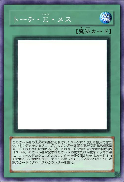 | このカード名の①②の効果はそれぞれ1ターンに1度しか使用できない。①:デッキからクロニクルカウンターを置く事ができる永続魔法カード1枚を手札に加える。②:このカードを含む自分の除外状態の「ユベル」のカード名が記されたカード2枚または4枚をデッキに戻し、フィールドのクロニクルカウンターを置く事ができるカード1枚を対象として発動できる。デッキに戻したカード2枚につき1つ、対象のカードにクロニクルカウンターを置く。 | |||