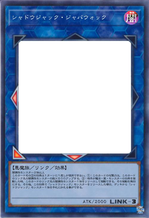 | 闇属性モンスター2体以上 このカード名の②の効果は1ターンに1度しか使用できない。①:このカードの攻撃力は、このカードのリンク先の闇属性モンスターの数×500アップする。②:相手が魔法・罠・モンスターの効果を発動した時、このカードのリンク先の闇属性モンスター1体をリリースして発動できる。その発動を無効にする。その後、この効果で「シャドウジャック」モンスターをリリースした場合、デッキから「シャドウジャック」モンスター1体を手札に加える事ができる。 | |||