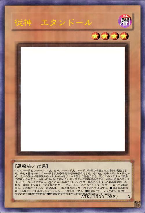 | ①このカード名で1ターンに1度、自分フィールド上のカードが効果で破壊された場合に発動できる。手札・墓地からこのカードを表側守備表示で特殊召喚できる。その後、相手はデッキ・手札から、元々の属性が神属性のモンスター1体をリリース無しで召喚できる。②このモンスターが表側で存在するかぎり、お互いにレベルを持たないモンスターを特殊召喚できず、相手は自身のモンスターしかリリースできない。③このカード名で1ターンに1度、相手モンスターの効果発動時、手札の「邪神」モンスター1体を相手に見せ、フィールド上のこのモンスターをリリースして発動できる。その相手モンスターの効果は、『相手は次のうち、1つを選んで適用する。●自身の墓地のカード5枚をデッキに戻してシャッフルし、1枚ドローする。●自身の手札・デッキから「邪神」モンスター1体を召喚する。●自身のデッキの上から1枚目を墓地に送る。』になる。 | |||