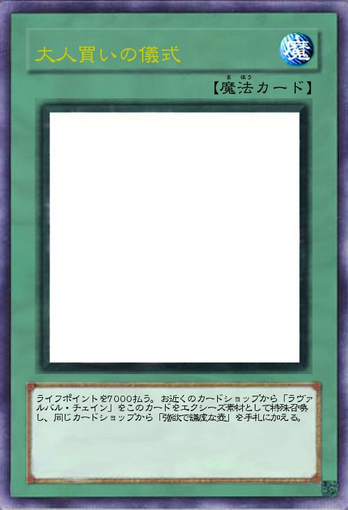| ライフポイントを7000払う。お近くのカードショップから「ラヴァルバル・チェイン」をこのカードをエクシーズ素材として特殊召喚し、同じカードショップから「強欲で謙虚な壺」を手札に加える。 | |||