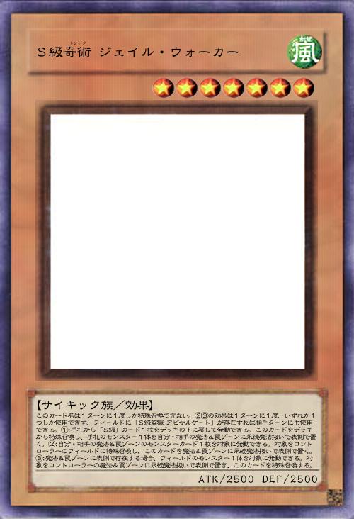 | このカード名は1ターンに1度しか特殊召喚できない。②③の効果は1ターンに1度、いずれか1つしか使用できず、フィールドに「S級監獄 アビサルゲート」が存在すれば相手ターンにも使用できる。①:手札から「S級」カード1枚をデッキの下に戻して発動できる。このカードをデッキから特殊召喚し、手札のモンスター1体を自分・相手の魔法&罠ゾーンに永続魔法扱いで表側で置く。②:自分・相手の魔法&罠ゾーンのモンスターカード1枚を対象に発動できる。対象をコントローラーのフィールドに特殊召喚し、このカードを魔法&罠ゾーンに永続魔法扱いで表側で置く。③:魔法&罠ゾーンに表側で存在する場合、フィールドのモンスター1体を対象に発動できる。対象をコントローラーの魔法&罠ゾーンに永続魔法扱いで表側で置き、このカードを特殊召喚する。 | |||
