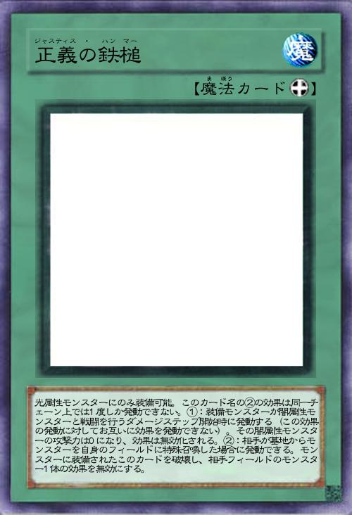 | 光属性モンスターにのみ装備可能。このカード名の②の効果は同一チェーン上では1度しか発動できない。①:装備モンスターが闇属性モンスターと戦闘を行うダメージステップ開始時に発動する(この効果の発動に対してお互いに効果を発動できない)。その闇属性モンスターの攻撃力は0になり、効果は無効化される。②:相手が墓地からモンスターを自身のフィールドに特殊召喚した場合に発動できる。モンスターに装備されたこのカードを破壊し、相手フィールドのモンスター1体の効果を無効にする。 | |||