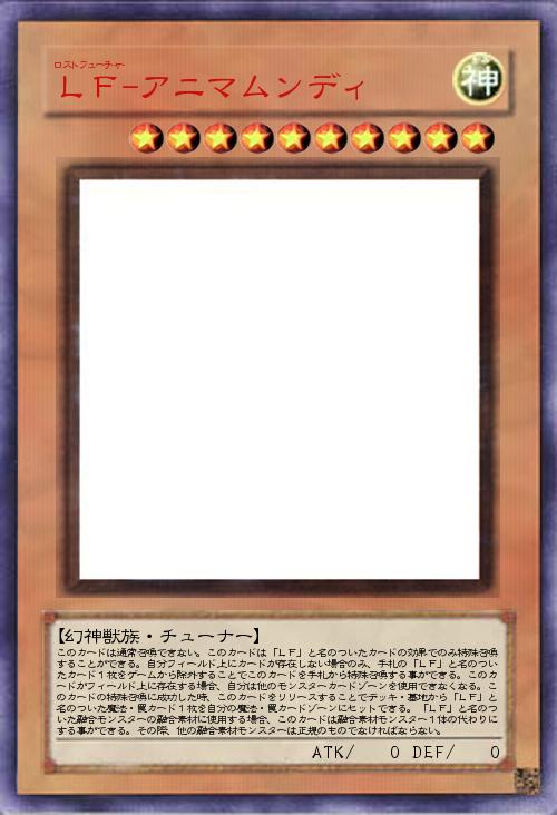 | このカードは通常召喚できない。このカードは「LF」と名のついたカードの効果でのみ特殊召喚することができる。自分フィールド上にカードが存在しない場合のみ、手札の「LF」と名のついたカード1枚をゲームから除外することでこのカードを手札から特殊召喚する事ができる。このカードがフィールド上に存在する場合、自分は他のモンスターカードゾーンを使用できなくなる。このカードの特殊召喚に成功した時、このカードをリリースすることでデッキ・墓地から「LF」と名のついた魔法・罠カード1枚を自分の魔法・罠カードゾーンにセットできる。「LF」と名のついた融合モンスターの融合素材に使用する場合、このカードは融合素材モンスター1体の代わりにする事ができる。その際、他の融合素材モンスターは正規のものでなければならない。 | |||