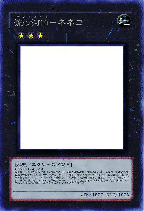 | レベル3モンスター×2 このカード名の①②の効果はそれぞれ1ターンに1度しか使用できない。①:このカードがX召喚した場合に発動できる。デッキから「サンドルイド」魔法・罠カード1枚を手札に加える。②:自分・相手ターンに、このカードのX素材を1つ取り除いて発動できる。自分フィールドの全ての「サンドルイド」モンスターの攻撃力は500アップし、自分フィールドの全ての「サンドルイド」Xモンスターの攻撃力はそのX素材の数×300アップする。 | |||