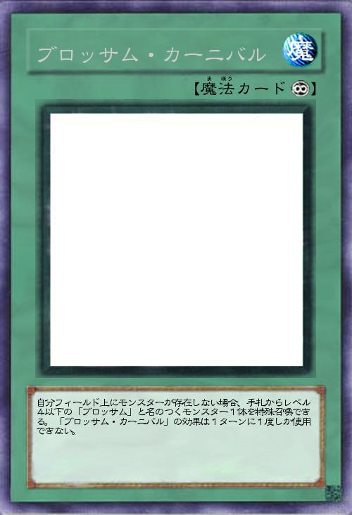 | 自分フィールド上にモンスターが存在しない場合、手札からレベル4以下の「ブロッサム」と名のつくモンスター1体を特殊召喚できる。「ブロッサム・カーニバル」の効果は1ターンに1度しか使用できない。 | |||