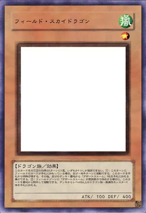 | このカード名の①②の効果は1ターンに1度、いずれか1つしか使用できない。①:このターンにフィールドのカードが手札に加わっている場合、自分・相手ターンに発動できる。このカードを手札から特殊召喚する。その後、自分のデッキ・墓地から「デザートストーム」1枚を手札に加える事ができる。②:フィールドゾーンに「デザートストーム」が表側表示で存在する場合に、このカードを墓地から除外して発動できる。デッキからレベル5以上のドラゴン族・風属性モンスター1体を手札に加える。 | |||