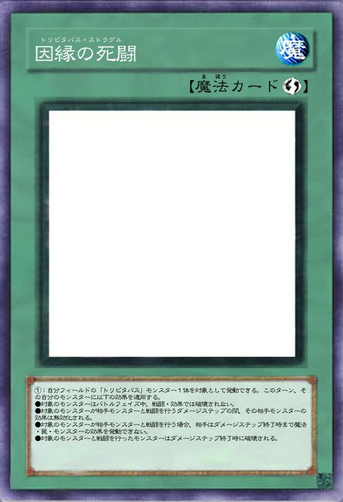 | ①:自分フィールドの「トリピタパス」モンスター1体を対象として発動できる。このターン、その自分のモンスターに以下の効果を適用する。 ●対象のモンスターはバトルフェイズ中、戦闘・効果では破壊されない。 ●対象のモンスターが相手モンスターと戦闘を行うダメージステップの間、その相手モンスターの効果は無効化される。 ●対象のモンスターが相手モンスターと戦闘を行う場合、相手はダメージステップ終了時まで魔法・罠・モンスターの効果を発動できない。 ●対象のモンスターと戦闘を行ったモンスターはダメージステップ終了時に破壊される。 | |||