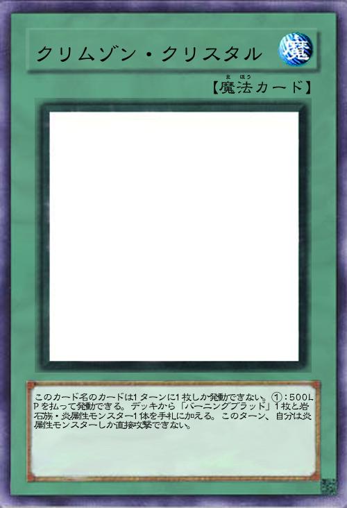 | このカード名のカードは1ターンに1枚しか発動できない。①:500LPを払って発動できる。デッキから「バーニングブラッド」1枚と岩石族・炎属性モンスター1体を手札に加える。このターン、自分は炎属性モンスターしか直接攻撃できない。 | |||