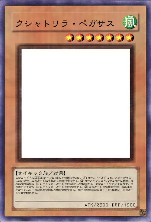 | このカード名の②③は1ターンに1度しか使用できない。①:自分フィールドにモンスターが存在しない場合、このカードは手札から特殊召喚できる。②:自分メインフェイズ時に自分の墓地、または除外状態の「クシャトリラ」カードを1枚選択し発動できる。そのカードをデッキに戻す。その後デッキから「クシャトリラ」カードを1枚除外する。③:このカードの攻撃宣言時、または相手がモンスターの効果を発動した場合発動できる。相手の除外状態のカードを1枚選び、そのカードを裏側除外する。 | |||