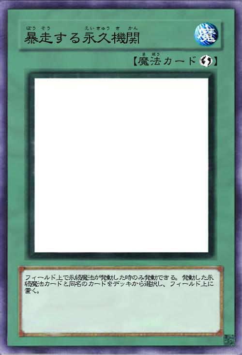 | フィールド上で永続魔法が発動した時のみ発動できる。発動した永続魔法カードと同名のカードをデッキから選択し、フィールド上に置く。 | |||