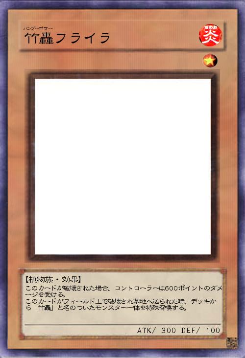 このカードが破壊された場合、コントローラーは600ポイントのダメージを受ける。 このカードがフィールド上で破壊され墓地へ送られた時、デッキから「竹轟」と名のついたモンスター一体を特殊召喚する。 |