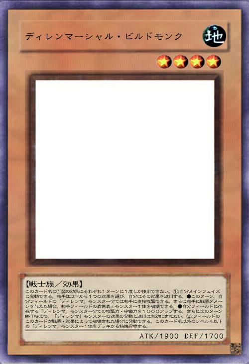 | このカード名の①②の効果はそれぞれ1ターンに1度しか使用できない。①:自分メインフェイズに発動できる。相手は以下から1つの効果を選び、自分はその効果を適用する。●このターン、自分フィールドの「ディレンマ」モンスター全ては相手に直接攻撃できる。さらに相手に戦闘ダメージを与えた場合、相手フィールドの表側表示モンスター1体を破壊できる。●自分フィールドに存在する「ディレンマ」モンスター全ての攻撃力・守備力を1000アップする。さらに次のターン終了時まで、「ディレンマ」モンスターの効果の発動と適用は無効化されない。②:フィールドのこのカードが戦闘・効果によって破壊された場合に発動できる。このカード名以外のレベル4以下の「ディレンマ」モンスター1体をデッキから特殊召喚する。 | |||