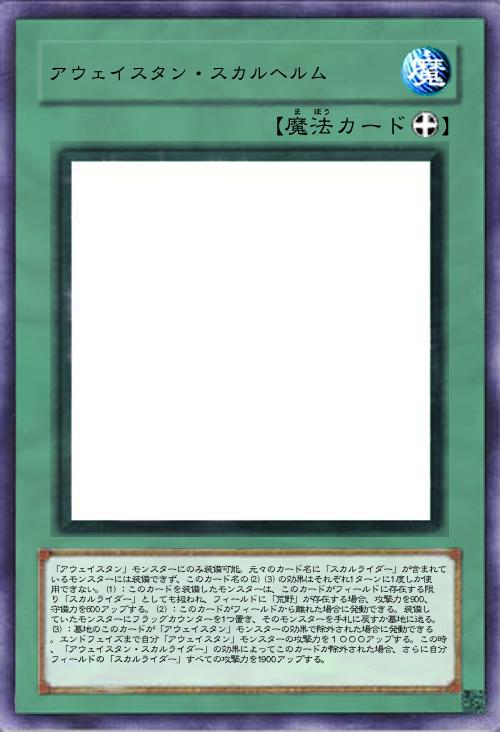 | 「アウェイスタン」モンスターにのみ装備可能。元々のカード名に「スカルライダー」が含まれているモンスターには装備できず、このカード名の(2)(3)の効果はそれぞれ1ターンに1度しか使用できない。(1):このカードを装備したモンスターは、このカードがフィールドに存在する限り「スカルライダー」としても扱われ、フィールドに「荒野」が存在する場合、攻撃力を900、守備力を600アップする。(2):このカードがフィールドから離れた場合に発動できる。装備していたモンスターにフラッグカウンターを1つ置き、そのモンスターを手札に戻すか墓地に送る。(3):墓地のこのカードが「アウェイスタン」モンスターの効果で除外された場合に発動できる。エンドフェイズまで自分「アウェイスタン」モンスターの攻撃力を1000アップする。この時、「アウェイスタン・スカルライダー」の効果によってこのカードが除外された場合、さらに自分フィールドの「スカルライダー」すべての攻撃力を1900アップする。 | |||