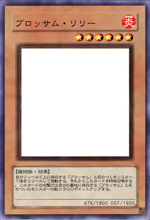 | 自分フィールド上に存在する「ブロッサム」と名のつくモンスター1体をリリースして発動する。手札からこのカードを特殊召喚する。このカードの攻撃力は自分の墓地に存在する「ブロッサム」と名のついたモンスターの数×300ポイントアップする。 | |||