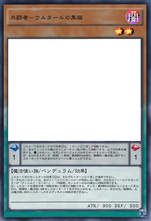| このカード名のモンスターの効果①②は、それぞれ1ターンに1度しか使用できない。 ①:手札のこのカードは、自分フィールドにモンスターが存在しない場合、又は自分フィールドのモンスターが「ランドルフ・カーター」・「共闘者」モンスターのみの場合に特殊召喚できる。 ②:このカードを通常召喚・特殊召喚した場合に発動できる。デッキ・裏側除外状態からこのカード名以外の、闇属性・魔法使い族Pモンスターカード1枚を手札に加える。このターン、自分は光/闇属性、又は魔法使い族モンスターしかEXデッキから特殊召喚できない。 | |||