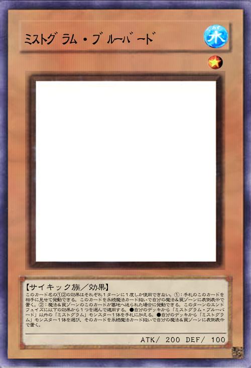 | このカード名の①②の効果はそれぞれ1ターンに1度しか使用できない。①:手札のこのカードを相手に見せて発動できる。このカードを永続魔法カード扱いで自分の魔法&罠ゾーンに表側表示で置く。②:魔法&罠ゾーンのこのカードが墓地へ送られた場合に発動できる。このターンのエンドフェイズに以下の効果から1つを選んで適用する。●自分のデッキから「ミストグラム・ブルーバード」以外の「ミストグラム」モンスター1体を手札に加える。●自分のデッキから「ミストグラム」モンスター1体を選び、そのカードを永続魔法カード扱いで自分の魔法&罠ゾーンに表側表示で置く。 | |||