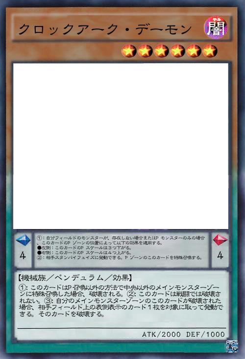 | ①:自分フィールドのモンスターが、存在しない場合またはPモンスターのみの場合、このカードのPゾーンの位置によって以下の効果を適用する。 ●左側:このカードのPスケールは3つ下がる。 ●右側:このカードのPスケールは4つ上がる。 ②:相手スタンバイフェイズに発動できる。Pゾーンのこのカードを特殊召喚する。 | |||