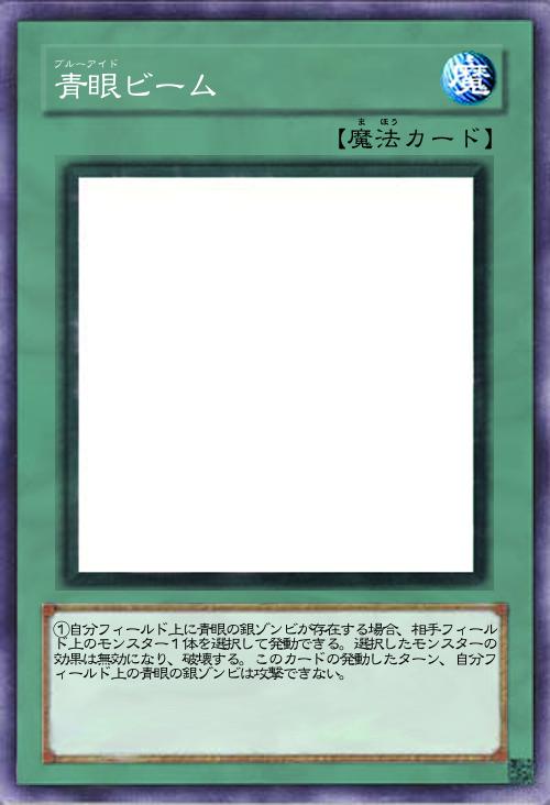 | ①自分フィールド上に青眼の銀ゾンビが存在する場合、相手フィールド上のモンスター1体を選択して発動できる。選択したモンスターの効果は無効になり、破壊する。このカードの発動したターン、自分フィールド上の青眼の銀ゾンビは攻撃できない。 | |||