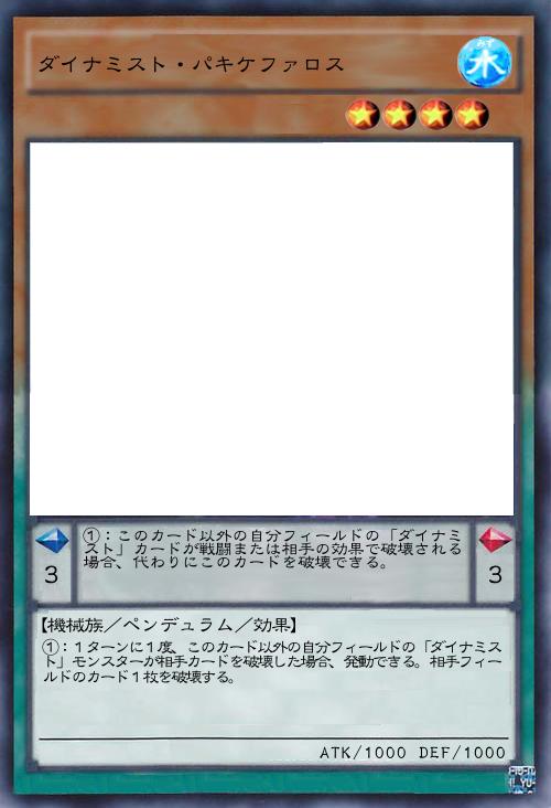 | ①:このカード以外の自分フィールドの「ダイナミスト」カードが戦闘または相手の効果で破壊される場合、代わりにこのカードを破壊できる。 | |||