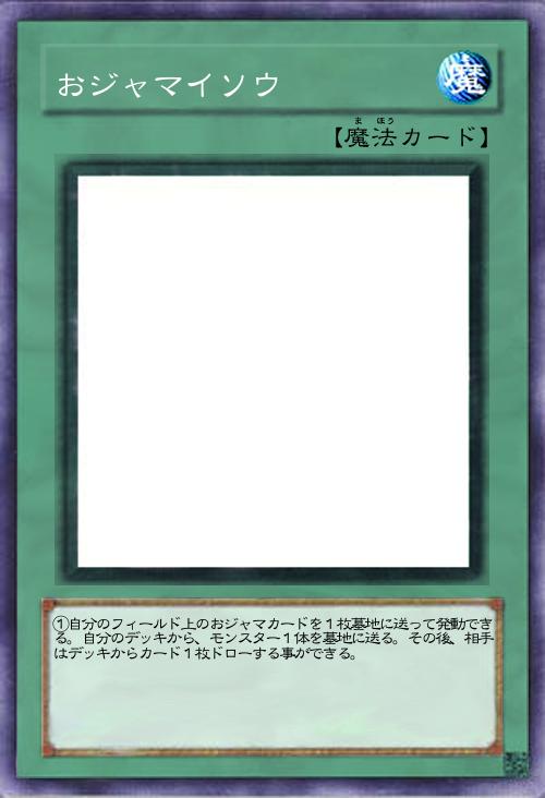 | ①自分のフィールド上のおジャマカードを1枚墓地に送って発動できる。自分のデッキから、モンスター1体を墓地に送る。その後、相手はデッキからカード1枚ドローする事ができる。 | |||