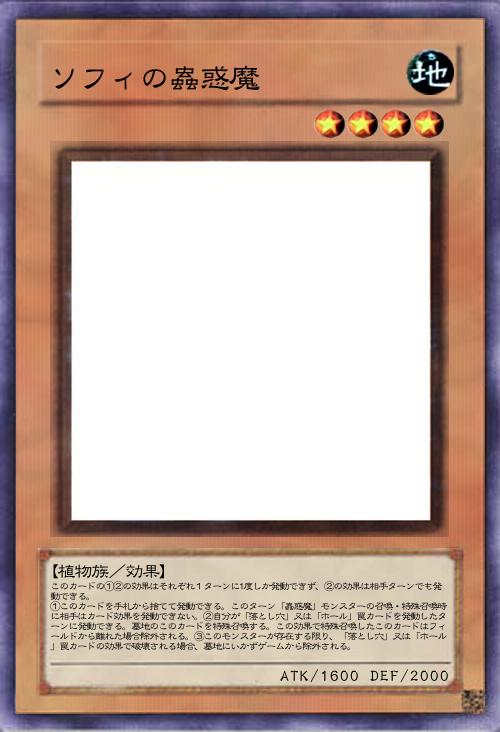 | このカードの①②の効果はそれぞれ1ターンに1度しか発動できず、②の効果は相手ターンでも発動できる。 ①このカードを手札から捨てて発動できる。このターン「蟲惑魔」モンスターの召喚・特殊召喚時に相手はカード効果を発動できない。②自分が「落とし穴」又は「ホール」罠カードを発動したターンに発動できる。墓地のこのカードを特殊召喚する。この効果で特殊召喚したこのカードはフィールドから離れた場合除外される。③このモンスターが存在する限り、「落とし穴」又は「ホール」罠カードの効果で破壊される場合、墓地にいかずゲームから除外される。 | |||