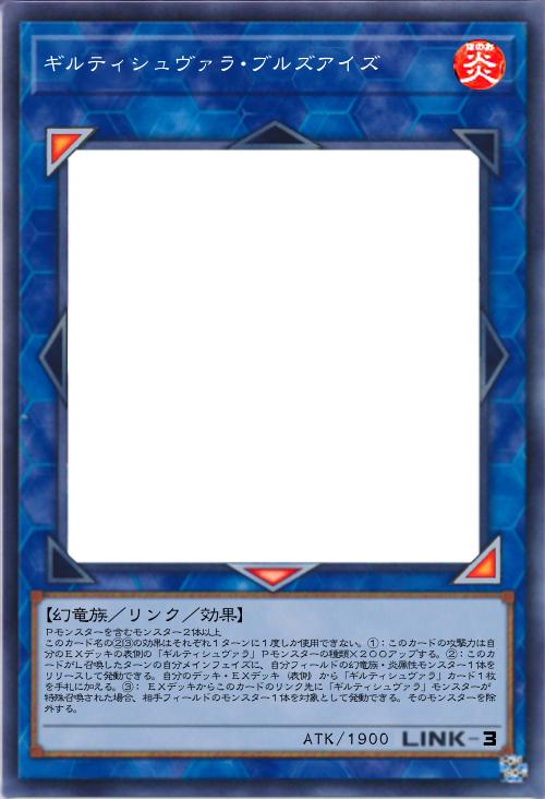 | Pモンスターを含むモンスター2体以上 このカード名の②③の効果はそれぞれ1ターンに1度しか使用できない。①:このカードの攻撃力は自分のEXデッキの表側の「ギルティシュヴァラ」Pモンスターの種類×200アップする。②:このカードがL召喚したターンの自分メインフェイズに、自分フィールドの幻竜族・炎属性モンスター1体をリリースして発動できる。自分のデッキ・EXデッキ(表側)から「ギルティシュヴァラ」カード1枚を手札に加える。③: EXデッキからこのカードのリンク先に「ギルティシュヴァラ」モンスターが特殊召喚された場合、相手フィールドのモンスター1体を対象として発動できる。そのモンスターを除外する。 | |||