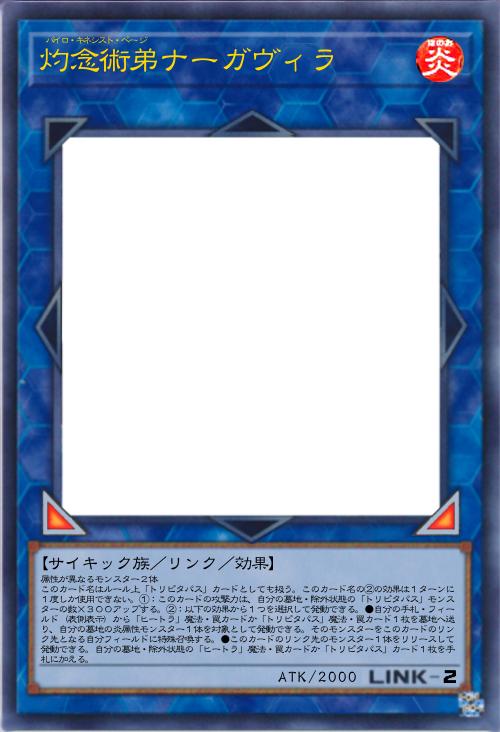 | 属性が異なるモンスター2体 このカード名はルール上「トリピタパス」カードとしても扱う。このカード名の②の効果は1ターンに1度しか使用できない。①:このカードの攻撃力は、自分の墓地・除外状態の「トリピタパス」モンスターの数×300アップする。②:以下の効果から1つを選択して発動できる。●自分の手札・フィールド(表側表示)から「ヒートラ」魔法・罠カードか「トリピタパス」魔法・罠カード1枚を墓地へ送り、自分の墓地の炎属性モンスター1体を対象として発動できる。そのモンスターをこのカードのリンク先となる自分フィールドに特殊召喚する。●このカードのリンク先のモンスター1体をリリースして発動できる。自分の墓地・除外状態の「ヒートラ」魔法・罠カードか「トリピタパス」カード1枚を手札に加える。 | |||