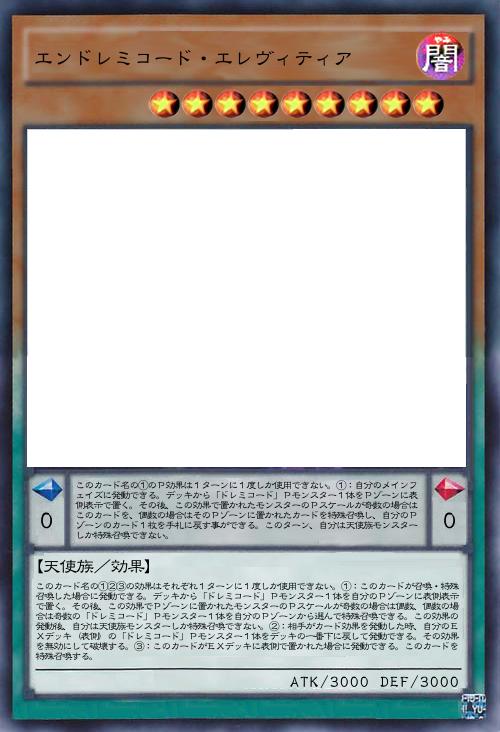 | このカード名の①②③の効果はそれぞれ1ターンに1度しか使用できない。①:このカードが召喚・特殊召喚した場合に発動できる。デッキから「ドレミコード」Pモンスター1体を自分のPゾーンに表側表示で置く。その後、この効果でPゾーンに置かれたモンスターのPスケールが奇数の場合は偶数、偶数の場合は奇数の「ドレミコード」Pモンスター1体を自分のPゾーンから選んで特殊召喚できる。この効果の発動後、自分は天使族モンスターしか特殊召喚できない。②:相手がカード効果を発動した時、自分のEXデッキ(表側)の「ドレミコード」Pモンスター1体をデッキの一番下に戻して発動できる。その効果を無効にして破壊する。③:このカードがEXデッキに表側で置かれた場合に発動できる。このカードを特殊召喚する。 | |||