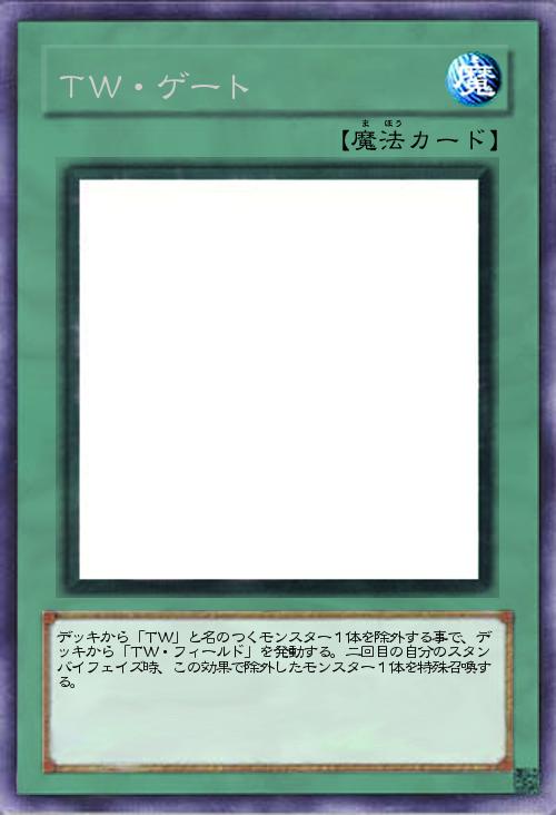 | デッキから「TW」と名のつくモンスター1体を除外する事で、デッキから「TW・フィールド」を発動する。二回目の自分のスタンバイフェイズ時、この効果で除外したモンスター1体を特殊召喚する。 | |||