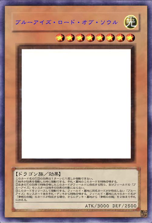 | このカード名の①③の効果は1ターンに1度しか発動できない。 ①相手が効果を発動した時に発動できる。手札・墓地のこのカードを特殊召喚する。 ②自身の①の効果で特殊召喚したこのカードがフィールドに存在する限り、自分フィールドの「ブルーアイズ」モンスターは相手の効果の対象にならない。 ③このカードをリリースして発動できる。フィールド・墓地に同名カードがが存在しない「ブルーアイズ」モンスター1体を手札・デッキから特殊召喚する。フィールド・墓地に元々のカード名が「青眼の白龍」のカードが存在する場合、さらにデッキ・墓地から「青眼の白龍」を2体まで手札に加える。 | |||