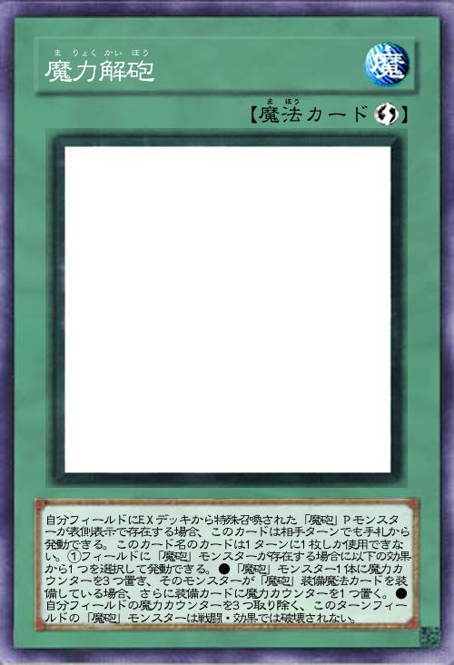 | 自分フィールドにEXデッキから特殊召喚された「魔砲」Pモンスターが表側表示で存在する場合、このカードは相手ターンでも手札から発動できる。このカード名のカードは1ターンに1枚しか使用できない。①フィールドに「魔砲」モンスターが存在する場合に以下の効果から1つを選択して発動できる。●「魔砲」モンスター1体に魔力カウンターを3つ置き、そのモンスターが「魔砲」装備魔法カードを装備している場合、さらに装備カードに魔力カウンターを1つ置く。●自分フィールドの魔力カウンターを3つ取り除く、このターンフィールドの「魔砲」モンスターは戦闘・効果では破壊されない。 | |||
