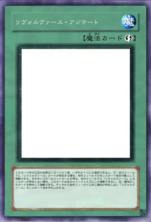 | このカード名の①②の効果は1ターンに1度、いずれか1つしか使用できない。①:自分フィールドに「リヴォルヴァース」カードが存在する場合、相手フィールドのモンスター1体を対象として発動できる。そのモンスターのコントロールを得る。自分フィールドに「リヴォルヴァース」Lモンスターが存在しない場合、このカードは自分メインフェイズにしか発動できない。②:墓地のこのカードを除外して発動できる。デッキから相手フィールドに同じ属性が存在しない「リヴォルヴァース」モンスター1体を手札に加える。 | |||