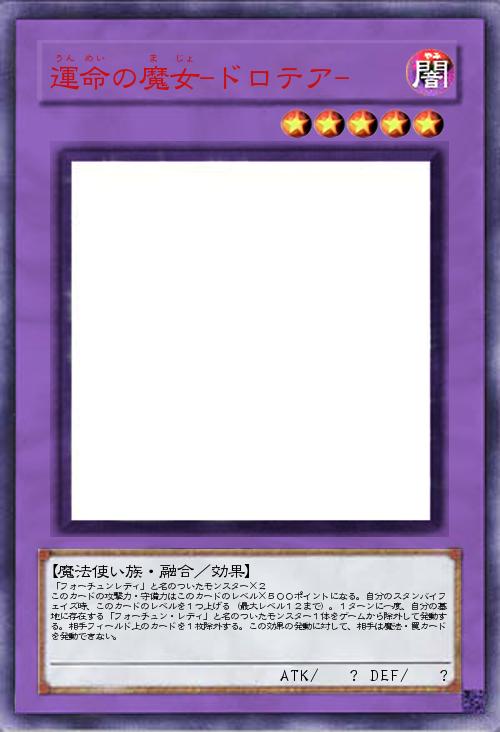 「フォーチュンレディ」と名のついたモンスター×2 このカードの攻撃力・守備力はこのカードのレベル×500ポイントになる。自分のスタンバイフェイズ時、このカードのレベルを1つ上げる(最大レベル12まで)。1ターンに一度、自分の墓地に存在する「フォーチュン・レディ」と名のついたモンスター1体をゲームから除外して発動する。相手フィールド上のカードを1枚除外する。この効果の発動に対して、相手は魔法・罠カードを発動できない。 |