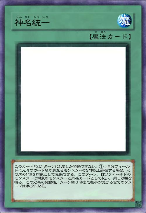 モンスターを同名にする魔法カードです。効果までコピーさせているのでターン1制限のないカードだと悪用される危険もあります。そのためダメージを半分にするデメリットを付けました。
