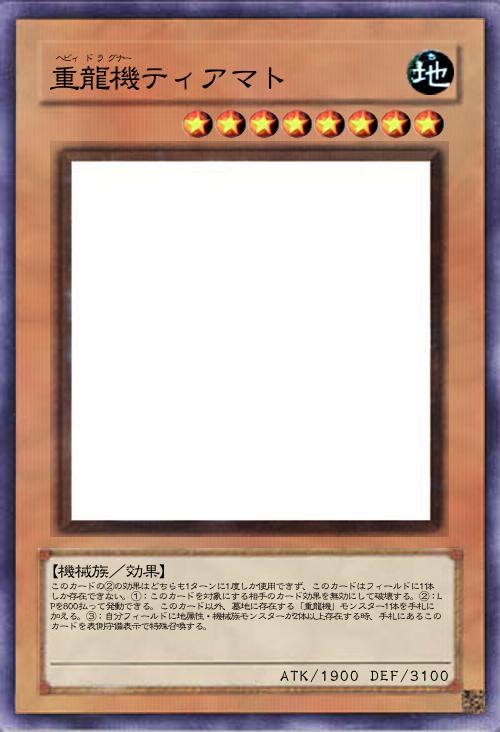 | このカードの②の効果はどちらも1ターンに1度しか使用できず、このカードはフィールドに1体しか存在できない。①:このカードを対象にする相手のカード効果を無効にして破壊する。②:LPを800払って発動できる。このカード以外、墓地に存在する「重龍機」モンスター1体を手札に加える。③:自分フィールドに地属性・機械族モンスターが2体以上存在する時、手札にあるこのカードを表側守備表示で特殊召喚する。 | |||