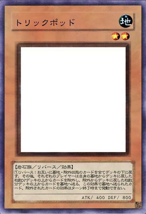 | ①リバース:お互いに墓地・除外状態のカードを全てデッキの下に戻す。その後、それぞれのプレイヤーは自身の墓地からデッキに戻した枚数分デッキの上からカードを除外し、除外からデッキに戻した枚数分デッキの上からカードを墓地へ送る。この効果で墓地へ送られたカード、除外されたカードの効果はターン終了時まで発動できない。 | |||