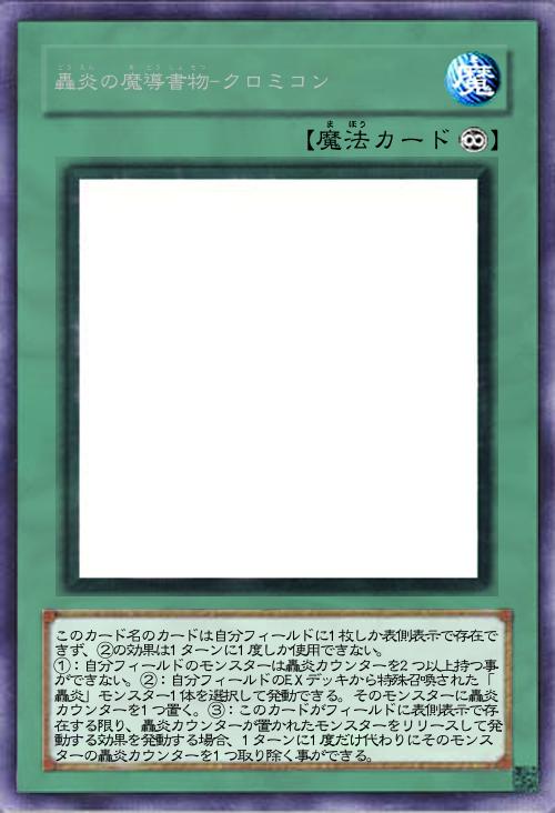 | このカード名のカードは自分フィールドに1枚しか表側表示で存在できず、②の効果は1ターンに1度しか使用できない。 ①:自分フィールドのモンスターは轟炎カウンターを2つ以上持つ事ができない。②:自分フィールドのEXデッキから特殊召喚された「轟炎」モンスター1体を選択して発動できる。そのモンスターに轟炎カウンターを1つ置く。③:このカードがフィールドに表側表示で存在する限り、轟炎カウンターが置かれたモンスターをリリースして発動する効果を発動する場合、1ターンに1度だけ代わりにそのモンスターの轟炎カウンターを1つ取り除く事ができる。 | |||
